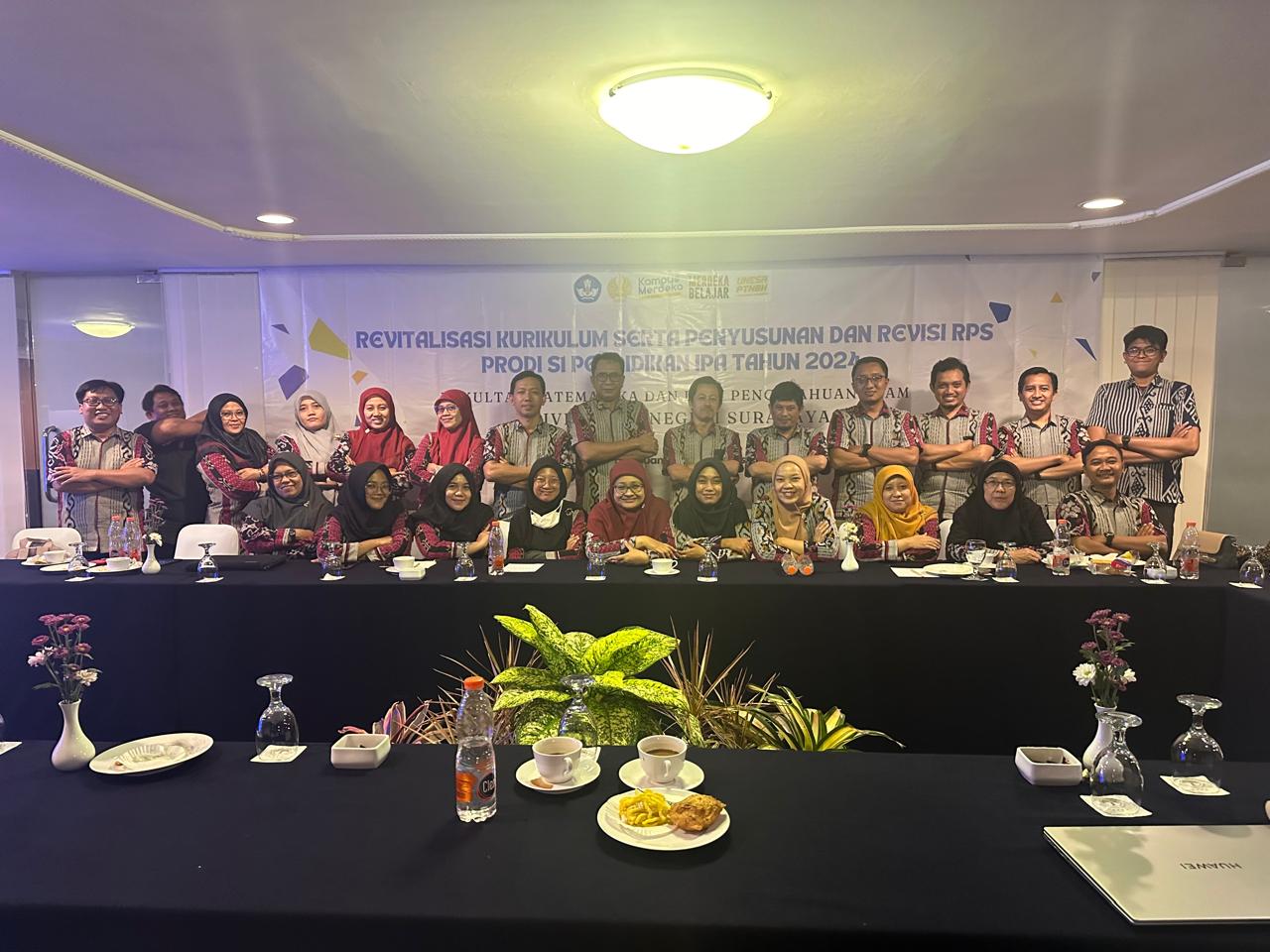 Surabaya - Program Studi S1 Pendidikan IPA, Fakultas Matematika dan Ilmu Pengetahuan Alam (FMIPA), Universitas Negeri Surabaya (UNESA) menyelenggarakan acara "Revitalisasi Kurikulum dan Penyusunan RPS" untuk Program Studi S1 Pendidikan IPA. Acara