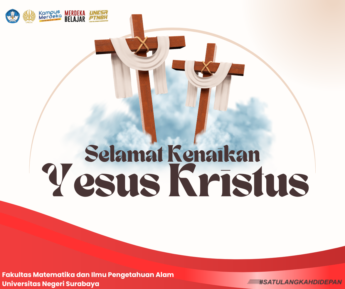 Surabaya – Program Studi S1 Pendidikan IPA, Fakultas Matematika dan Ilmu Pengetahuan Alam Universitas Negeri Surabaya (FMIPA Unesa) mengucapkan selamat memperingati Kenaikan Yesus Kristus jatuh pada Kamis, 9 Mei 2024. Perayaan ini tepat 40 hari