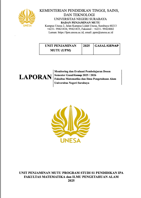 Setiap semester, Unit Penjaminan Mutu sebagai pelaksana penjaminan mutu di tingkat Jurusan/Program Sarjana Pendidikan Sains melakukan pemantauan (monitoring) dan evaluasi perkuliahan yang dilaksanakan oleh para dosen. Berikut hasil laporan pemantauan dan evaluasi (Monev) dari tahun 2019 hingga 2025.